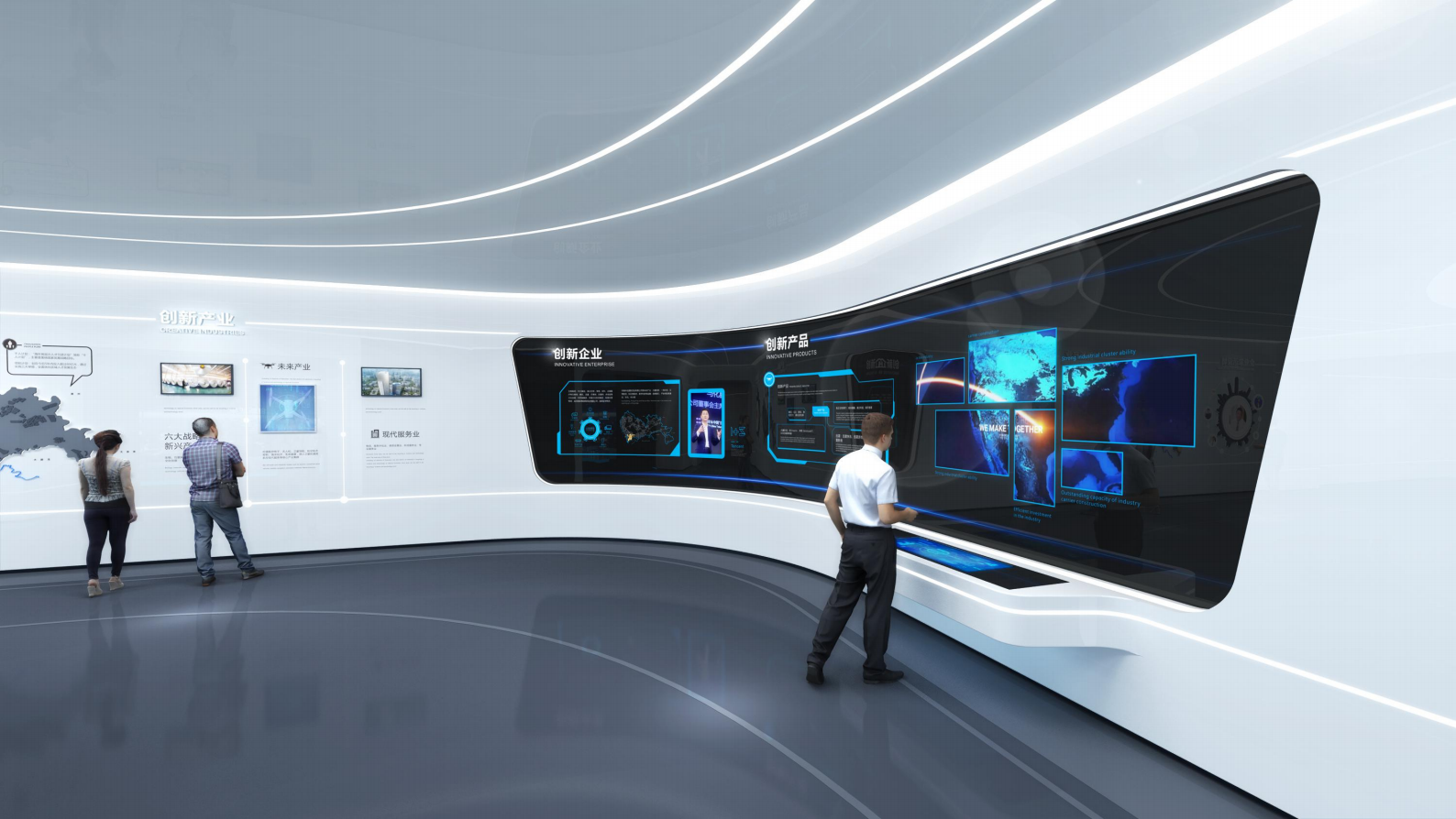 重要性、必要性的文化在展示設(shè)計(jì)中越來越得到重視。展廳設(shè)計(jì)不僅設(shè)計(jì)有形的展廳形象,更注重展廳精神層面的深層次內(nèi)涵。因此,展廳設(shè)計(jì)應(yīng)全面深入挖掘、整合、重塑、明確文化的主題,通過人機(jī)互動(dòng)的高科技手段,靈活多樣的方式方法將文化、理念更有效地傳達(dá)給受眾。
