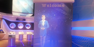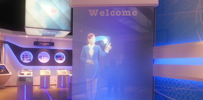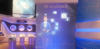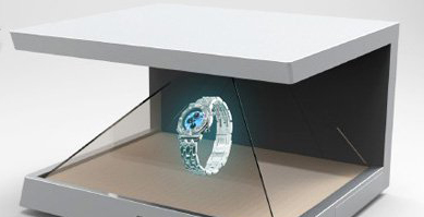 - 180度全息成像——即是用單面玻璃和全息膜進行展示的手法,視覺上更通透,可觸控操作,更具科技感。