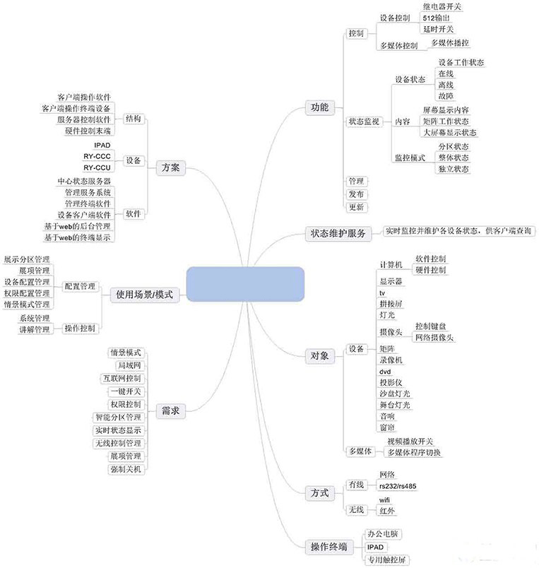 展廳中控系統(tǒng)(中央控制系統(tǒng)、ipad控制系統(tǒng))是對(duì)展廳內(nèi)的聲、光、電等各種設(shè)備進(jìn)行集中控制的一套軟硬件相結(jié)合的系統(tǒng)。用戶可用移動(dòng)式控制面板、計(jì)算機(jī)顯示器、觸摸屏或無線遙控等設(shè)備,通過計(jì)算機(jī)和中央控制系統(tǒng)軟件來控制投影機(jī)、展示臺(tái)、燈光、影碟機(jī)、錄像機(jī)、卡座、功放、話筒、計(jì)算機(jī)、筆記本、電動(dòng)窗簾、電動(dòng)屏幕等設(shè)備。